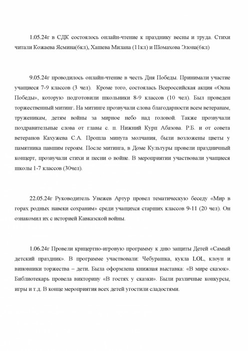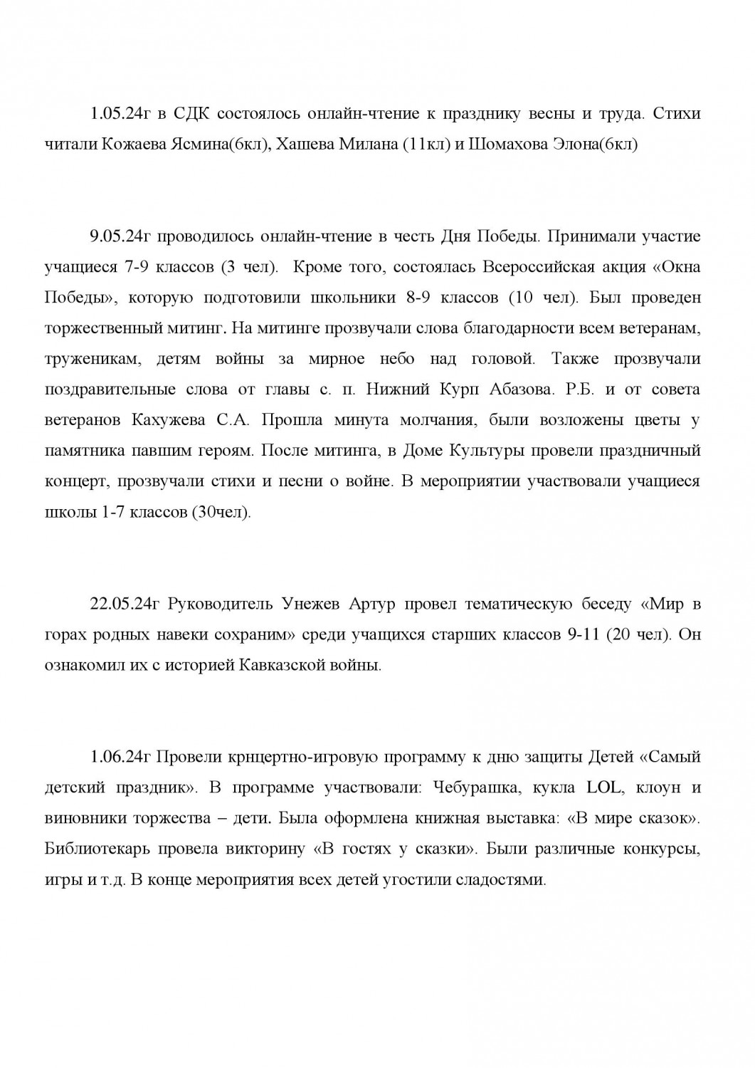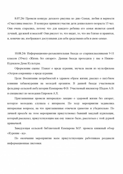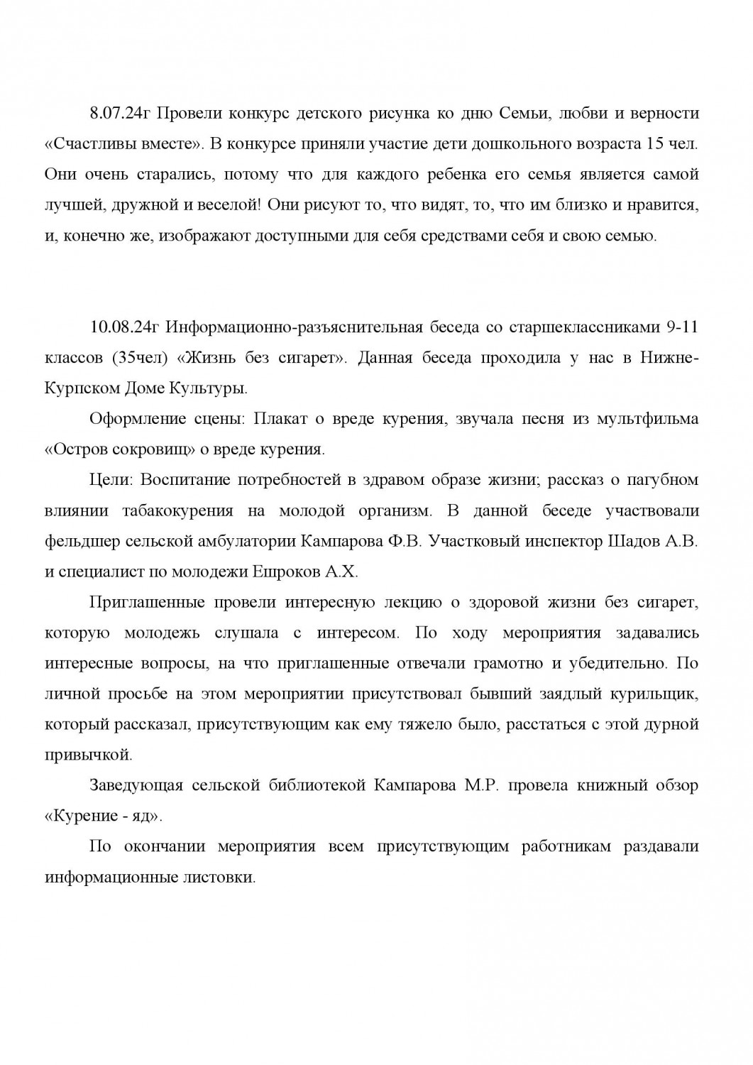 о проделанной работе МУК «Сельский Дом Культуры сп.Нижний Курп» за 2024г